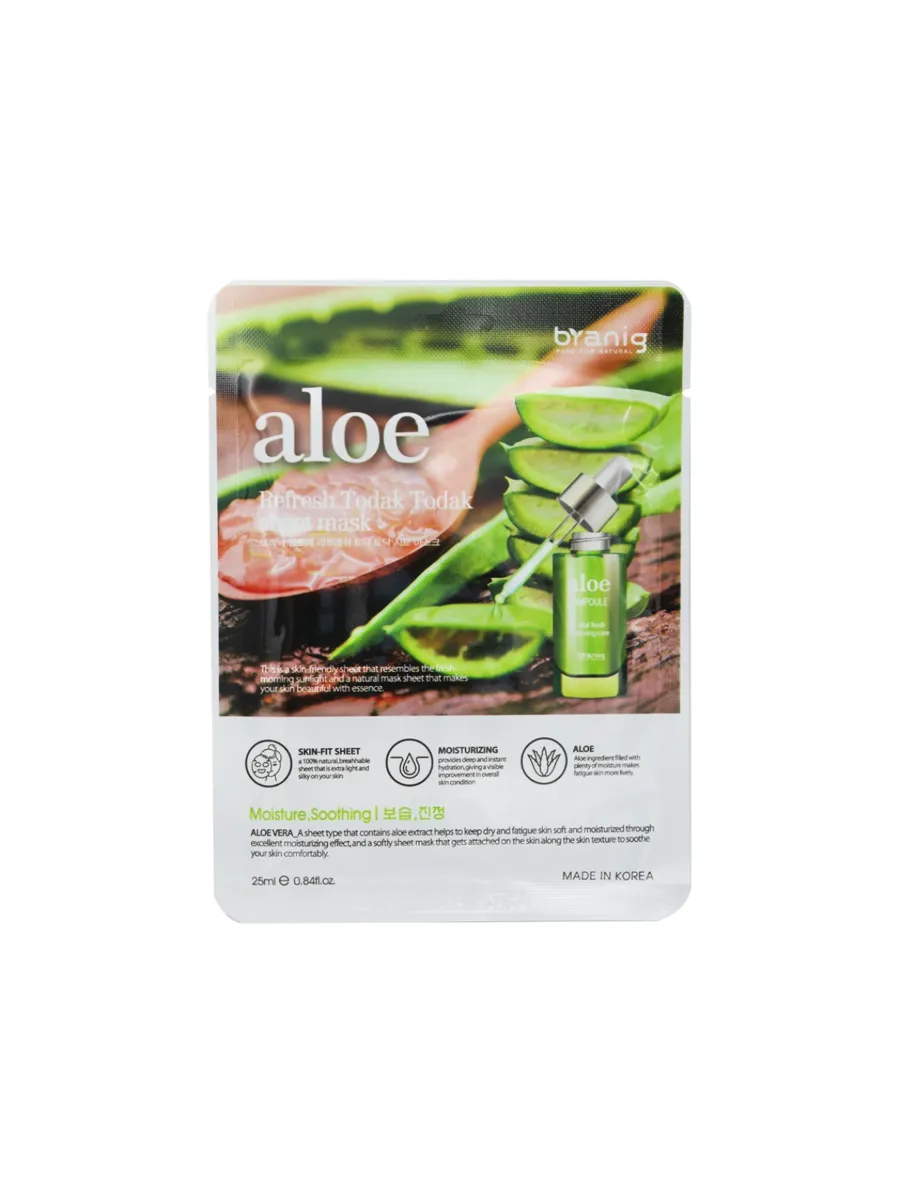 Маска для лица тканевая Aloe Refresh Todak-Todak Sheet Mask обеспечивает мгновенное увлажнение кожи, уменьшает раздражения и уменьшает выраженность покраснений. Пропитывающая эссенция богата экстрактом алоэ, который является естественным увлажнителем. Тонкое лекало маски на 100 натурально, легко пропускает воздух и не ощущается на коже. В упаковке 1 штука. Объем 25 мл.