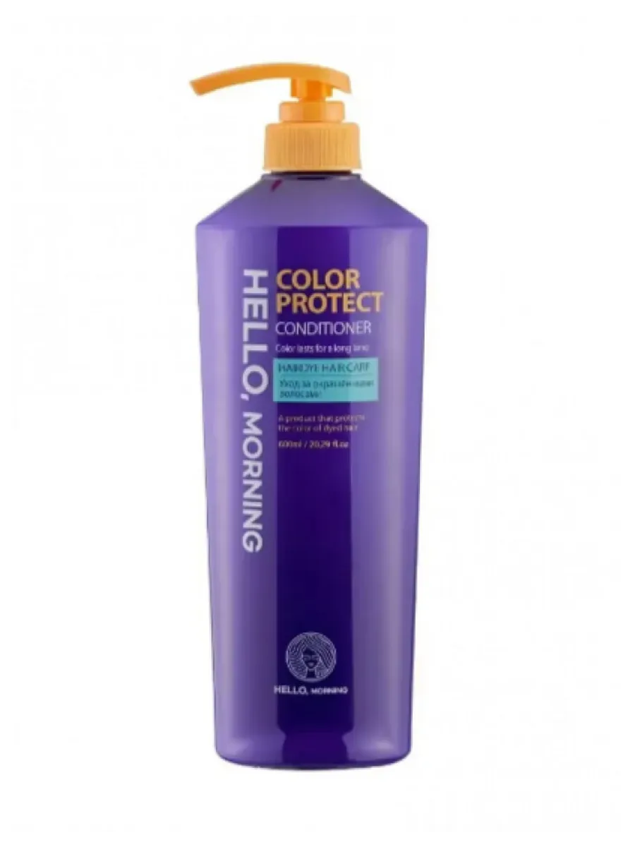 Кондиционер для окрашенных волос Hello Morning с защитой цвета обеспечивает интенсивное увлажнение и питание ваших волос, при этом помогая сохранить яркость и стойкость цвета. Специальная формула кондиционера оберегает волосы от выцветания и обесцвечивания, делая их гладкими, мягкими и блестящими. Кондиционер защищает цвет окрашенных волос, питает кожу головы полезными веществами. Содержит кератин и эластин, необходимые белки для роста волос, а также защищает поврежденные волосы. Гидролизованный шелк, белок извлеченный из шелкового полотна, проникает в поры волос и придает им эластичность. Способ применения: Нанесите на чистые волосы по всей длине, оставьте на несколько минут, затем смойте теплой водой.