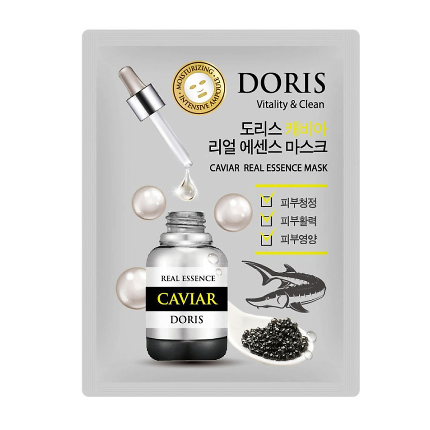 Маска из ткани DORIS CAVIAR REAL ESSENCE MASK с пропиткой оказывает омолаживающий эффект, корректирует овал лица, стимулирует кровоснабжение. Ингредиенты в составе увлажняют, убирают мелкие морщинки, уменьшают жирность, выравнивают поверхность лица, придают коже здоровый матовый однородный вид. Кроме того, в состав включен уникальный набор экстрактов растений, оказывающих выраженное антиокислительное действие. Они останавливают процессы увядания кожи и защищают от вредного воздействия извне. При регулярном применении маски восстанавливается нормальное состояние кожных покровов, они приобретают сияние и здоровый цвет.