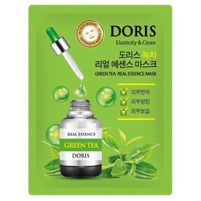 Сывороточная тканевая маска для лица DORIS GREEN TEA REAL ESSENCE MASK с пропиткой из вытяжки зеленого чая обладает множеством полезных качеств: замедляет процессы старения, активизирует метаболизм и улучшает внешний вид в целом. Помимо перечисленного, в экстракте зеленого чая содержится большое количество аскорбиновой кислоты, витаминов группы В, а также необходимые организму антиоксиданты. Даже один сеанс окажет положительное влияние. При регулярном использовании маски можно рассчитывать на защиту от вредного воздействия свободных радикалов, уменьшение видимых морщин. Средство питает дерму, моделирует контур лица.