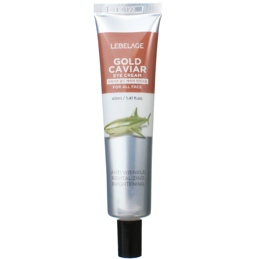 Корейский крем для глаз (век) концентрированный Lebelage Eye Cream Gold Caviar, с активным омолаживающим действием, эффективно разглаживает микрорельеф нежной кожи вокруг глаз, выравнивает ее тон, устраняет сухость и дряблость. Экстракт икры насыщает кожу олигоэлементами, аминокислотами, минералами и протеинами, которые оказывают мощное укрепляющее и лифтинг действие, питают, смягчают и стимулируют регенерацию кожи, разглаживают мимические возрастные морщины и заломы. Золото выступает в роли проводника, позволяя активным компонентам намного быстрей проникать в глубокие слои эпителия, усиливает процесс регенерации и микроциркуляции, обладает мощным антиоксидантным действием, тормозит процесс увядания. Также в составе: гидролизованный коллаген и протеин риса, масло семян макадамии и арганы, аденозин, витамины А и Е